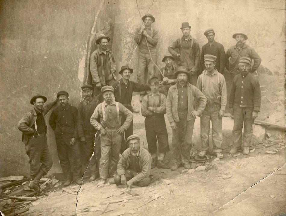 Owners and workers pose for a photograph at the Pike River Quarry.