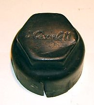 This hubcap screwed on the hub of a wheel. Most hub caps are pounded into place by a hammer. This cap came off a Maxwell automobile which was manufactured from 1904 to 1925. The company is now one of the major automobile companies. Can you guess which one? Here is a hint. The name of the company begins with a "C."