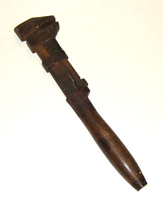 This adjustable monkey wrench with flat jaws fit perfect on the square headed bolts commonly used on farm machinery. Why do you think it was called a monkey wrench? Here is a hint. The last name of the person who invented the wrench was Moncky.