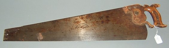 Henry Disston & Sons; Key Stone Saw Works; Philadelphia, U.S.A.; Cast Steel Warrented; Patent Ground -- Black ink on saw blade.