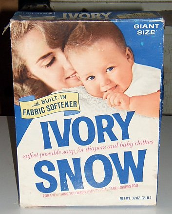 Ivory Snow laundry soap was commonly used to clean baby diapers. It was tough on stains and gentle on the baby's skin.