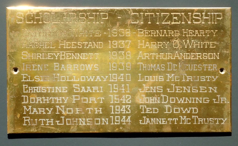 Brass award placque for scholarship and citizenship given at Amberg High School. See notes for list of awards.